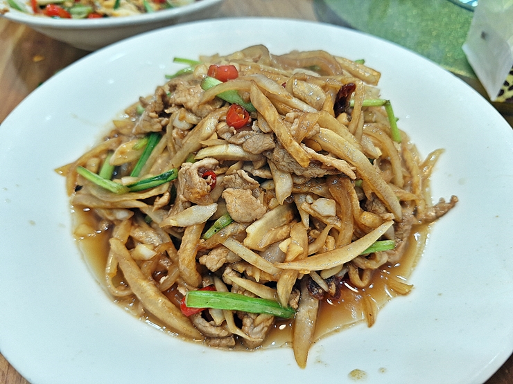 자차이 볶음. 흔히 말하는 짜사이를 다양한 채소와 함께 볶았다. 이건 단독 요리가 아니라 밥 반찬으로 먹는 것이라고 한다. 하지만 식당에서 나올 때까지 밥을 구경도 못해봤기 때문에 우린 그냥 요리처럼 먹었다. 밥 반찬이라 그런지 굉장히 짜고 자극적이었다.