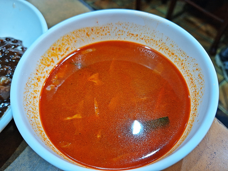 함께 나온 짬뽕 국물. 동해반점의 짬뽕은 육수가 아닌 채수를 사용해서 만든다. 그래서 맛이 가볍고 부담이 없다. 이런 짬뽕 국물 하나만 있어도 소주 한 병은 거뜬하지.