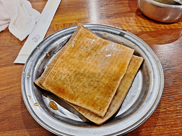 맛있게 잘 구워진 껍데기는 콩가루에 찍어 맛있게 먹는다. 콩가루 없이 먹어도 맛있는 돼지 껍데기다. 바삭하면서 쫄깃한 식감을 같이 느낄 수 있는 껍데기. 돼지 너 이 녀석. 너는 정말 버릴 것이 하나도 없는 소중한 동물이로구나.