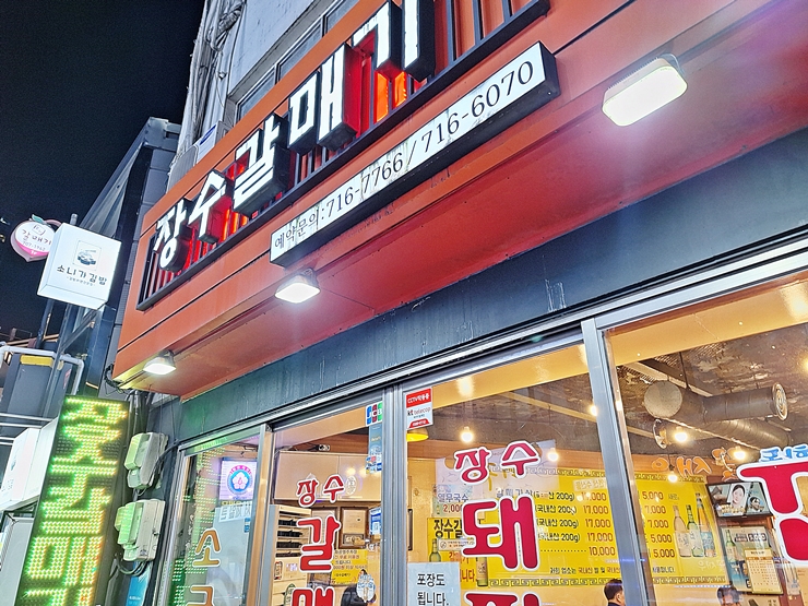 새해를 맞이하여 학군단 동기와 조촐한 신년회를 하기로 했다. 조촐한 자리이지만 맛 없는 것을 먹을 수는 없지. 그래서 어디서 어떻게 무엇을 맛있게 먹을까 잠시 고민을 하다가 공덕역에 가서 갈매기살을 먹기로 했다. 공덕역에는 족발 골목과 갈매기 골목이 있는데 개인적으로 갈매기 골목을 더 좋아하는 편이다. 이번에 동기와 방문한 곳은 갈매기 골목의 터줏대감이라 할 수 있는 장수갈매기다.