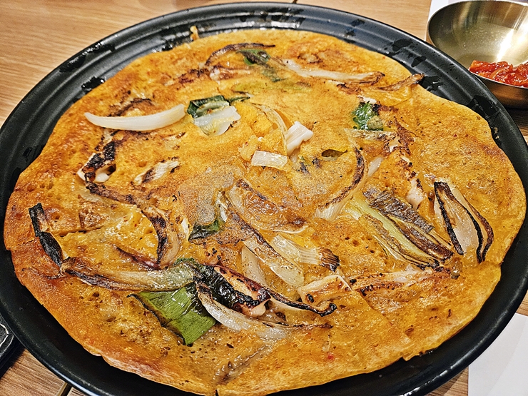김치전. 막걸리가 생각나는 맛이다. 날이 추운 날 김치전이나 파전에 막걸리 한 잔 하면 몸에 온기가 돌지. 막걸리 한 잔 하고 싶었지만 술 자리가 많았던 연말이었기 때문에 꾹 참았다. 역시 인내심이 뛰어난 멋진 나.
