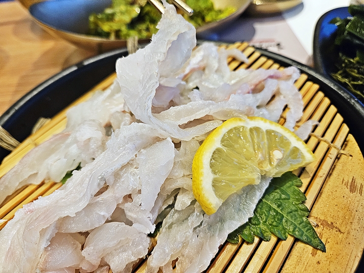 세꼬시. 세꼬시는 도다리가 나왔는데 맛이 상당히 좋았다. 그래서 보쌈을 먹기 위해 비어둔 배를 좀 채웠지. 세꼬시를 잘 하지 못하는 집에 갈 경우 뼈가 거슬려서 식감이 상당히 좋지 않게 느껴지는데, 해초섬은 뼈를 잘 잘라서 그런 불쾌한 식감은 느낄 수 없었다.
