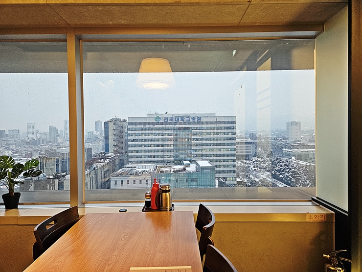 높은 곳에 위치해 있기 때문에 바깥 풍경을 바라보는 맛이 있다. 우리가 방문했던 날은 눈이 상당히 많이 오던 날이었다. 이렇게 추운 날에는 그저 따뜻한 고기를 먹는 것이 가장 좋지만, 항상 고기를 먹으며 살 수는 없지. 아쉬움을 크게 삼키고 음식이 나오길 기다렸다.