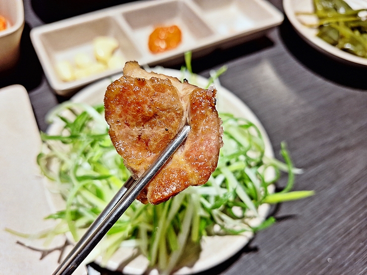 목살에 소금을 가볍게 찍어 맛있게 냠냠. 목살이지만 전혀 질기지 않고 육즙을 가득 머금어 촉촉함을 느낄 수 있다. 이렇게 훌륭한 고기에는 소주 한 잔 걸쳐야 하지만 최근에 술을 줄이고 있어서 꾹 참았다. 역시 건강 관리를 잘 하는 멋진 나.
