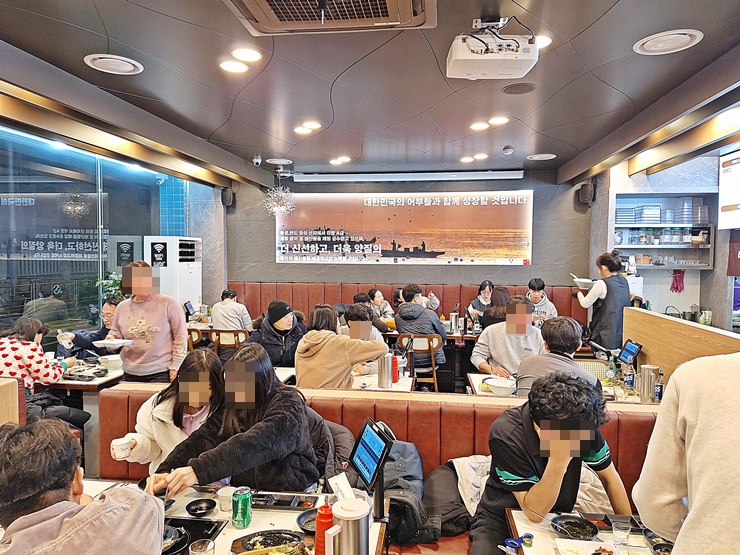 내부에 굉장히 많은 고객들이 있어서 상당히 놀랐다. 가족, 친구, 커플 단위로 오는 고객들이 상당히 많았다. 어린이들은 콜라, 사이다를 마시고 있었고 어른들은 대부분 소주를 마시고 있었다. 소주, 오 너는 내 친구친구.