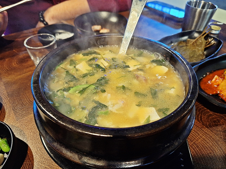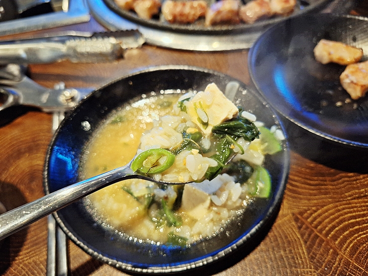 차돌박이 된장술밥. 그 맛이 정말 좋아서 두 번 주문해서 먹었다. 일반적인 된장술밥과 다르게 미역이 들어간 미역 된장국 맛이 난다. 감칠맛도 상당해서 계속해서 먹게 되는 매력이 있는 요리였다.