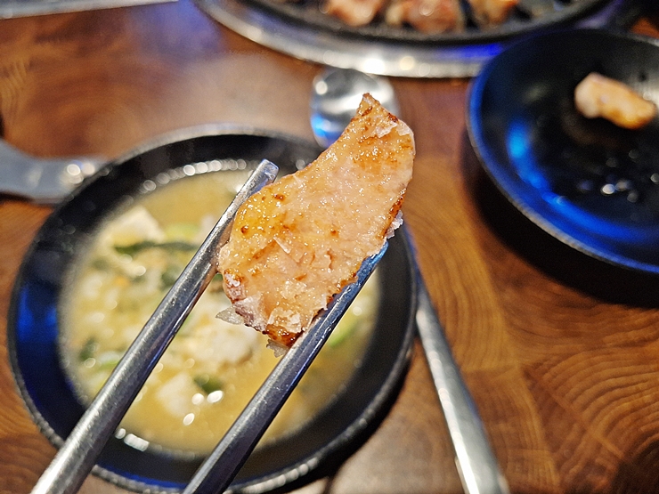 고기는 직원 분이 직접 구워 주기 때문에 편하게 식사를 즐길 수 있는 장점이 있다. 난 고기를 직접 굽는 것을 좋아하는데, 요새는 나이가 들고 체력이 떨어져서 그런지 남이 구워주는 고기도 잘 즐길 수 있게 되었다. 이것이 바로 붙잡을 수 없는 세월의 흐름인 것 같다.