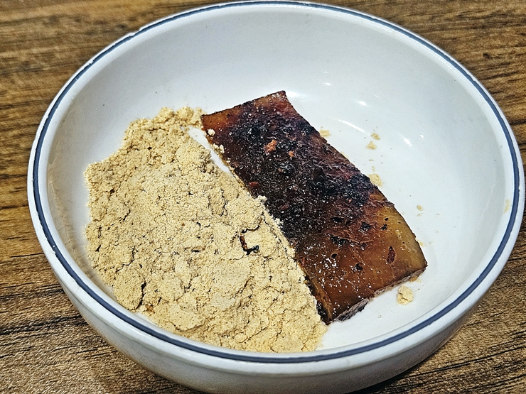 지인과 대화를 나누다 보니 좀 타버리고 말았네. 세상에 맙소사. 내가 이런 실수를 하다니. 참으로 뼈 아픈 실수가 아닐 수 없다. 다시는 이러한 실수를 하지 않도록 고기를 구울 때 집중력을 좀 더 발휘해야겠다. 겉은 바삭하고 속은 쫀득한 껍데기는 참으로 별미다. 거기에 콩가루를 찍어 먹으면 고소함이 배가 된다. 영등포에서 맛있는 돼지 고기를 먹고 싶다면 한 번 가볼 것을 추천하는 곳이다.