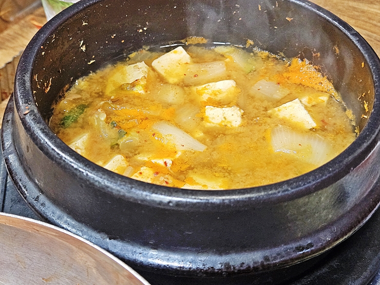 기본으로 나오는 된장찌개. 두부, 양파와 파가 풍부하게 들어있다. 기본으로 나오는 것인데 이 정도 구성이면 감지덕지지. 저절로 소주 한 잔을 부르는 맛이다. 어릴 때는 된장찌개보다 김치찌개를 더 좋아했는데 이제 나이가 들어서 그런지 이런 구수한 된장찌개가 더 좋다.