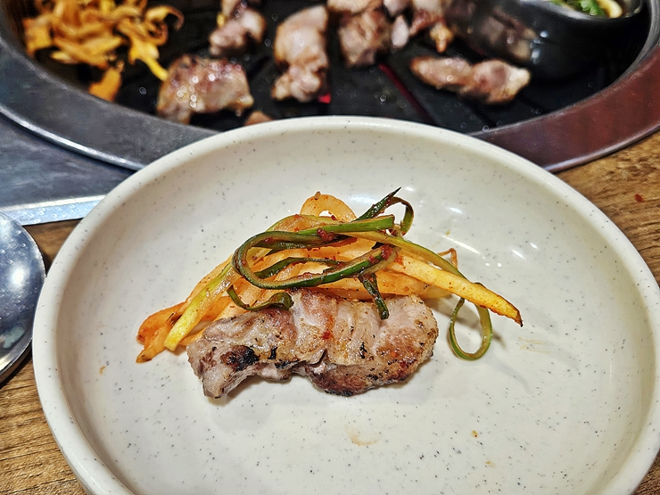 고기는 그냥 먹을 때 가장 맛있게 먹을 수 있는 것이지만, 짝꿍이 채소를 많이 먹으라고 해서 파절이, 무생채와 콩나물을 함께 올려 먹었다. 꼬들살 특유의 쫀득한 식감과 더불어 탄력을 함께 느낄 수 있다. 역시 맛있는 부위다. 이런 맛있는 부위를 다른 사람들은 모르면 좋겠다. 너무 유명해지면 곤란하다. 내가 먹을 것이 줄어들게 되니까.