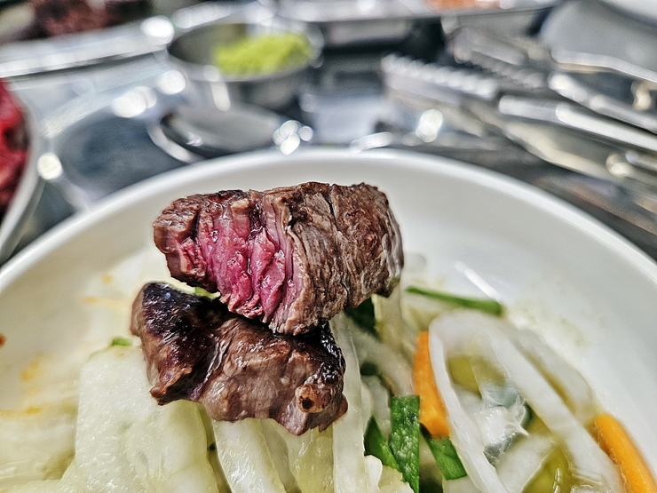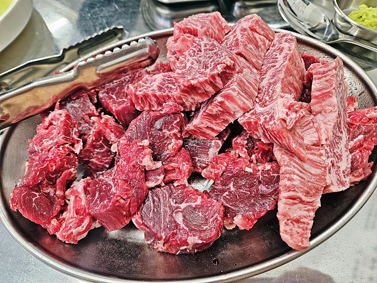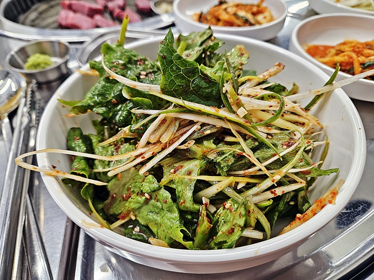맛이 좋았던 상추 파절이. 상추와 파를 함께 무쳐 제공하는데 상당히 맛이 좋았다. 내가 워낙 이런 파절이를 좋아하기 때문에 그런 것일 수도 있겠지만, 같이 간 지인도 참 맛있다며 많이 먹었다. 그래, 많이 먹어라. 그래야 내가 고기를 더 먹을 수 있다.