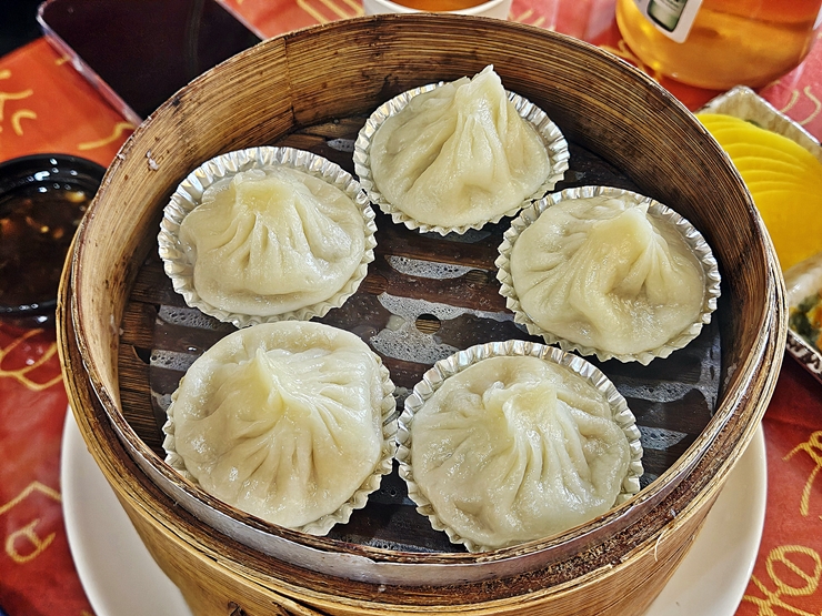 소롱포. 소롱포는 소룡포라는 잘못된 이름으로 불리기도 한다. 소롱포는 육즙을 젤라틴으로 만들어 굳히는데, 찜기에 넣어 찔 때 이 젤라틴이 녹게 된다. 그래서 다른 만두보다 육즙이 충만하고 진한 풍미를 느낄 수 있다. 소롱포는 5개가 나오는데, 가격을 생각하면 조금 비싸다고 생각을 할 수 있지만 그 맛을 보면 가격이 수긍이 간다.