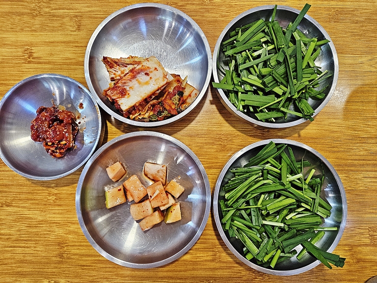 반찬. 오징어 젓갈, 김치, 깍두기와 부추를 제공한다. 부추를 인원수에 맞게 제공하는 것이 무척 마음에 든다. 나와 형 모두 몸에 좋고 맛도 좋은 부추를 많이 먹기 때문에 이런 곳에 오면 괜히 기분이 좋아진다. 김치와 깍두기 맛은 평범했는데 오징어 젓갈이 상당히 맛이 좋았다.