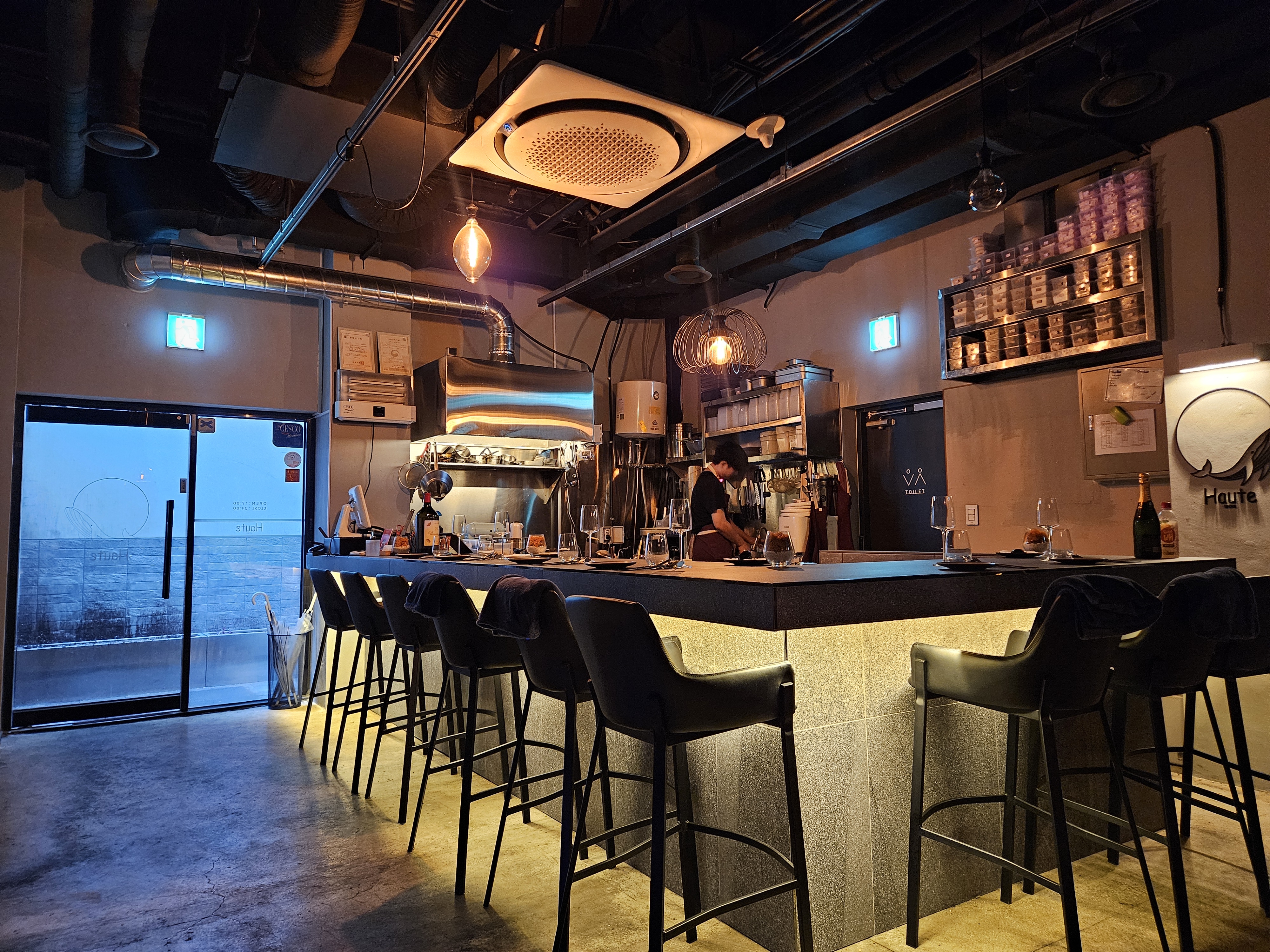 깔끔한 내부 모습. 바 테이블과 일반 테이블이 있다. 예약을 할 경우 원하는 자리에 앉을 수 있는 것 같다. 지인이 예약을 했기 때문에 예약 된 일반 홀 테이블에 앉았다. 우리가 조금 이르게 방문해서 그런지 처음 들어갈 때는 고객이 거의 없었는데 나중에는 자리가 제법 찼다.