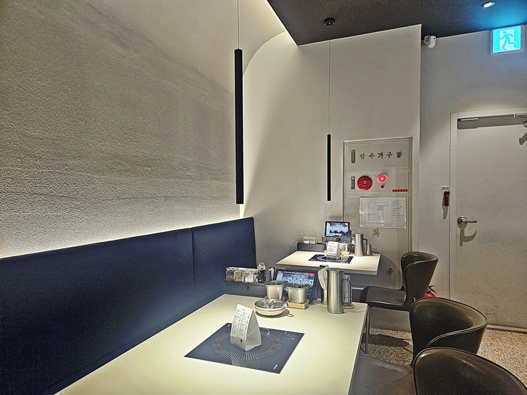 깔끔한 내부 모습. 한식이 아니라 양식을 팔아도 좋을 것 같은 분위기다. 우리는 이른 시간에 방문했기 때문에 고객이 거의 없어서 마음 편히 먹을 수 있는 곳으로 앉았다. 맡김 차림을 주문할 경우 직원 호출을 하라고 되어 있어서 호출을 한 후 주문했다.