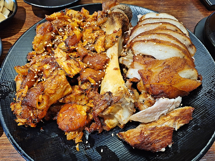 서비스로 나오는 것인데도 그래도 구색은 잘 갖췄다. 족발이 나오기 전까지 이 술 국을 안주 삼아 소주를 기울이면 소주 한 병은 그냥 거뜬하다. 맛도 나쁘지 않아 계속 먹게 되는 매력이 있다.