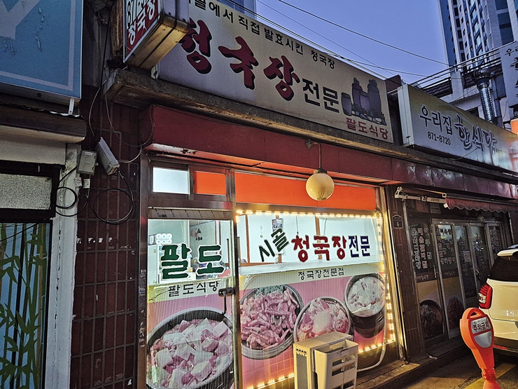 의정부에서 일을 잘 마친 후 저녁을 먹기 위해 방문한 팔도식당. 이곳 청국장에 소주 한 잔 꼭 마시라는 추천을 받아 방문하게 되었다. 그냥 무작정 추천한 곳은 아닐까 잠시 걱정을 했는데 추천을 한 지인이 같이 따라와서 청국장과 소주를 함께 하자고 하여 모든 의심을 거두고 발걸음을 가볍게 옮겼다.