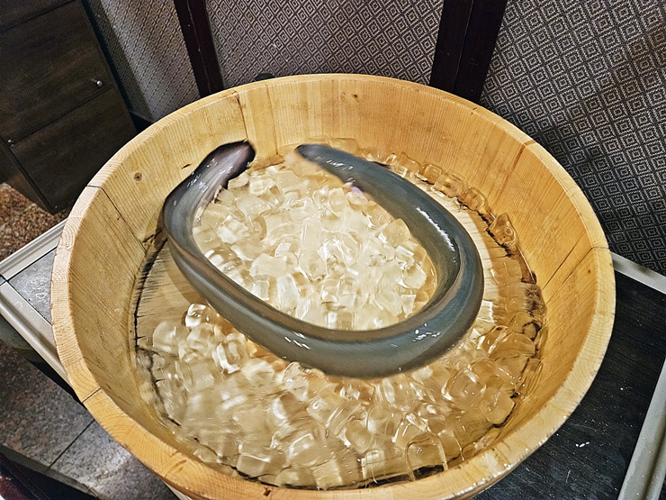 우리의 피가 되고 살이 되어준 장어. 이날 장어를 세 마리 정도 먹었는데 전부 찍진 않고 이 한 마리만 찍었다. 장어가 굉장히 힘이 좋아서 그런지 계속 꿈틀꿈틀 움직여서 사진을 찍기 좀 힘들었다.
