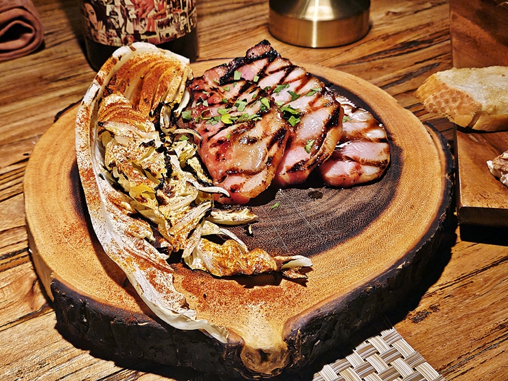 스모크 베이컨. 베이컨을 주문하니 구운 배추도 함께 나온다. 그릴을 사용해서 구운 베이컨은 짭짤하면서 쫄깃함 식감을 가지고 있었다. 베이컨을 두툼하고 호쾌하게 썰어 제공하는데 와인이 아니라 그 어떤 주류와도 잘 어울릴 맛이다. 역시 고기는 언제 어디서 누구와 어떻게 먹어도 참 좋다.