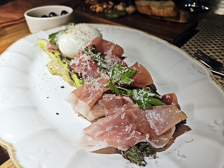 구운 아스파라거스. 아스파라거스, 프로슈토와 수란이 나온다. 어릴 때는 아스파라거스 특유의 쌉쌀하면서 비릿한 맛이 싫어서 꺼려했는데 요새는 참 잘 먹는다. 특히 건강에 좋다고 하니 더욱 챙겨 먹는 편도 있다. 이제는 이렇게 건강을 신경 쓰면서 음식을 가려 먹어야 하는 나이가 되었다. 오, 이런 슬픔.