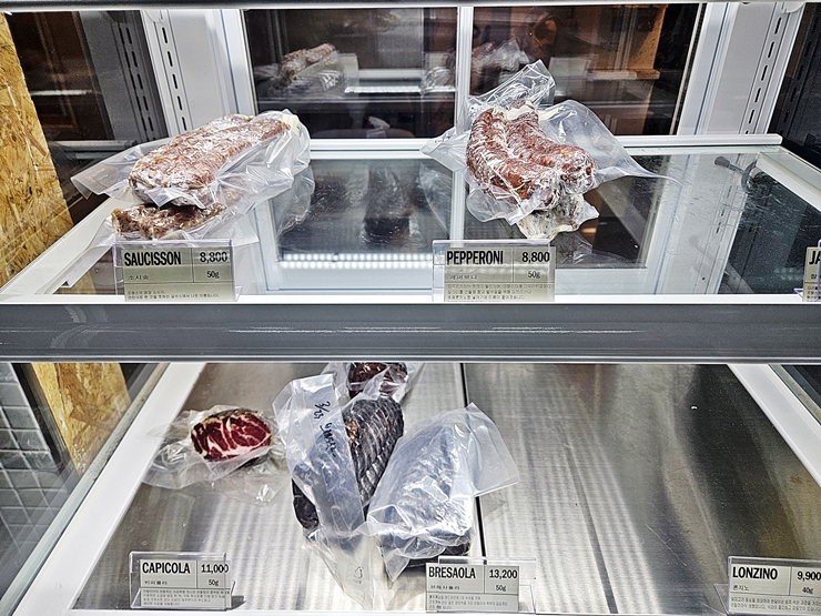 메뉴 사진을 찍은 거 같은데 없네. 어쩔 수 없이 바로 즐긴 음식을 올리고 한다. 이날 우리가 마셨던 와인은 판티니 몬테풀치아노 다부르쪼. 그리 높지 않은 가격이면서 훌륭한 맛을 내는 와인이다. 같이 간 지인은 와인을 상당히 좋아하는데 흥에 겨워 어쩌고 저쩌고 말을 했다. 와인에 대한 조예가 깊지 않고 흥미도 많지 않은 나는 녀석의 말을 한 귀로 듣고 한 귀로 흘렸다. 와인과 함께 주문한 샤퀴테리 샘플러. 다양한 햄, 테린, 치즈, 견과류와 과일이 나온다. 가격 대비 상당히 구성이 훌륭한데 다들 와인과 잘 맞는 조합이다.