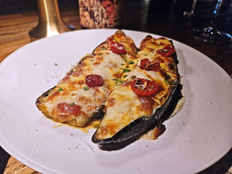 가지 그라탕. 가지는 튀겨 먹는 것이 제일이지만 이렇게 구워 먹는 것도 맛있다. 가지 무침이라는 요리 때문에 가지가 저평가 되는 것이 참 아쉽다. 토마토 소스로 속을 채운 후 그 위에 호쾌하게 치즈를 얹어 구운 요리다. 구운 가지는 겉은 약간 질기면서도 속은 부드럽게 잘 씹혔다.