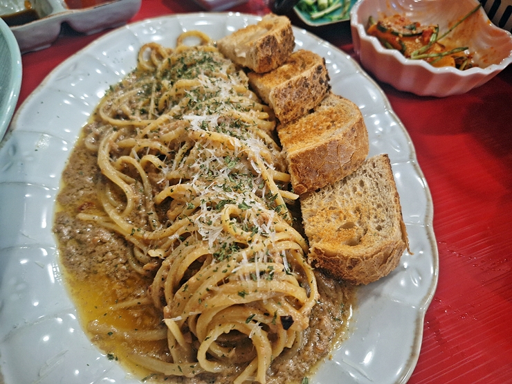 마무리로 주문한 오징어 내장 파스타. 시그니처 메뉴라고 해서 주문을 했는데 이걸 먹었을 때 많이 취해 있어서 맛은 제대로 느끼지 못했다. 뭔가 진한 감칠맛이 느껴졌는데 잘 기억이 나지 않아 표현을 못하겠다. 굉장히 맛있게 먹고 즐거운 시간을 보낸 산호초. 증산역 인근에서 맛있는 해산물을 먹고 싶다면 꼭 한 번 가볼 곳으로 추천하는 곳이다.
