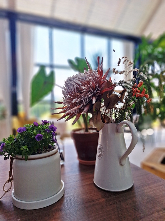 플라워 카페이기 때문에 카페 내부에 상당히 많은 꽃들과 화분이 있다. 꽃을 참 좋아하는 짝꿍에게는 정말 행복한 곳이겠지. 오랜만에 꽃이 가득한 곳을 가니 마음이 편안해짐을 느꼈다.