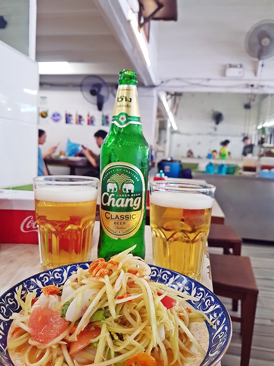 쏨땀과 함께 즐긴 창 맥주. 3대 태국 맥주라 불린다. 창은 태국어로 "코끼리'를 뜻하는데 그래서 병에 코끼리 두 마리가 있다. 시원한 맛이 일품인 창 맥주. 태국 출장 때 참 많이 마셨다.