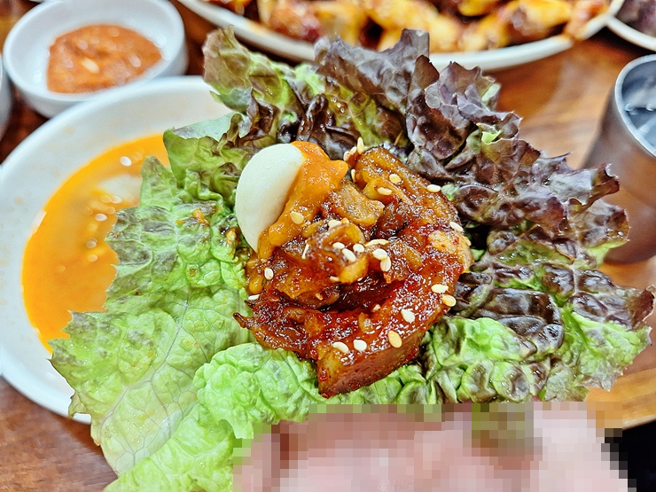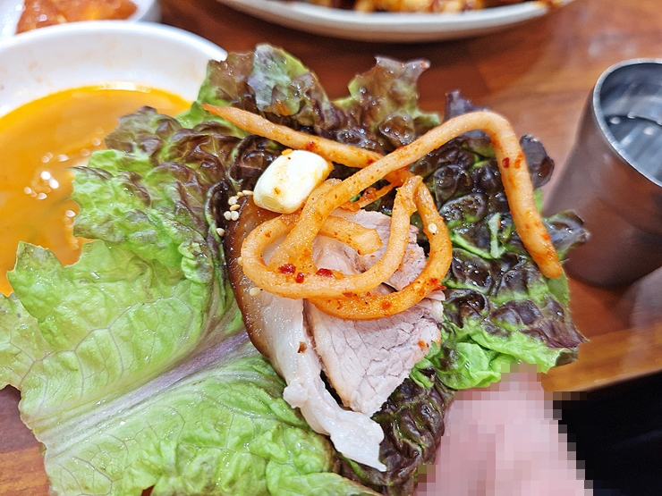 불족발도 쌈으로 맛있게 냠냠. 처음에는 은은하게 매운 맛이 올라오는데 나중에는 확 매워진다. 난 매운 음식을 잘 먹지 못하기 때문에 먹기 좀 힘들었다. 하지만 이것은 나의 문제고, 매운 음식을 잘 먹는 지인은 맛있게 맵다며 잘 즐겼다. 풍성한 안주와 함께 맛있는 족발을 먹고 싶다면 한 번 가볼 것을 추천하는 곳이다.