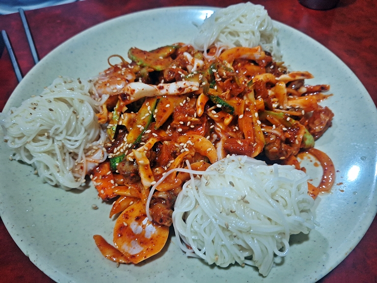 어디인지 기억이 나지 않지만 어쨌든 먹었던 골뱅이 소면 무침. 내 입에 골뱅이 무침 소스가 상당히 시어서 먹기 좀 힘들었다. 다른 안주를 주문해서 먹을까 했지만 그러면 너무 살이 찔 거 같아서 그냥 먹지 않았지. 역시 절제력이 뛰어난 멋진 나. 요새도 이렇게 열심히 살이 찌고 있다.