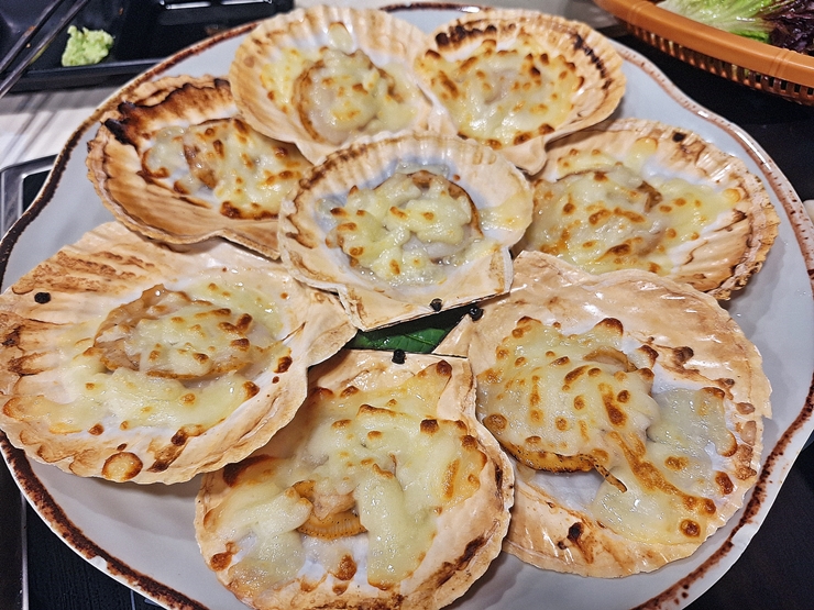 회를 먹었던 어느 날, 회를 먹다 느끼한 것이 먹고 싶어서 가리비 치즈 구이를 주문했다. 근데 왜 회 사진이 없는지 모르겠네. 가리비 치즈 구이는 가리비의 짭짤한 맛과 치즈의 고소하고 느끼한 맛이 잘 어울렸다. 가리비 구이 한 점에 소주 한 잔 마시면 천국이 따로 없지.