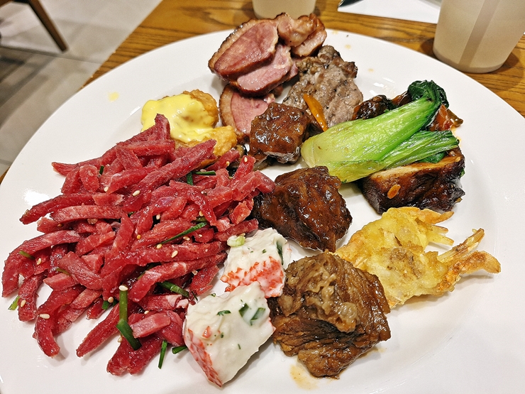 조금만 먹으려고 했는데 소주가 있으니 안주 삼아 계속 이것저것 먹었다. 육회, 오리 고기, 양갈비, 동파육, 튀김과 크림 새우 등을 먹었지. 참으로 훌륭한 안주여서 취할 것 같았지만, 동기 결혼식에서 취할 수는 없으니 정신을 차리고 계속 마시고 먹었다.