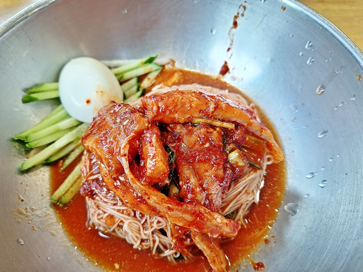 사무실 근처에 있는 곳에서 회 냉면을 먹었다. 가격이 저렴해서 큰 기대를 하지 않고 먹었는데 의외로 맛이 좋아서 허겁지겁 먹었지. 사리 하나 추가해서 먹을까 잠시 고민을 했지만 요새 살이 찌고 있어서 사리는 추가하지 않았다. 역시 건강 관리를 철저히 하는 멋진 나.