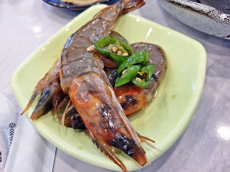서비스로 받은 새우장. 짜지 않고 간이 적당하게 잘 맞는다. 껍질을 해체해야 하는 번거로움이 있지만 맛있는 것을 먹을 수 있다면 그 정도 수고는 감내할 수 있지. 새우장 한 입 먹고 소주 한 잔 마시면 참으로 행복하다.