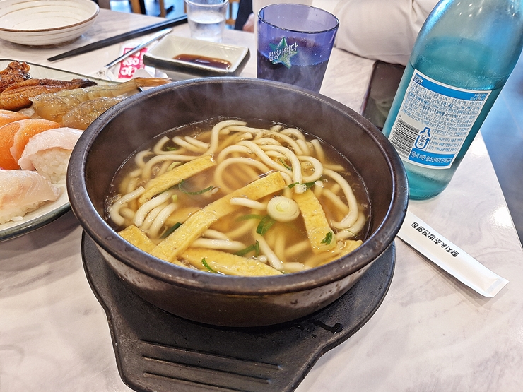 우리가 워낙 잘 먹고 잘 마셔서 그런지 서비스로 계란 초밥을 받았다. 소주에 비해 안주가 부족해서 밥 따로 계란 따로 분해해서 먹었지. 함께 먹었더라면 그 진정한 맛을 느낄 수 있었겠지만 이 자리는 술자리었기 때문에 안주가 필요했다.