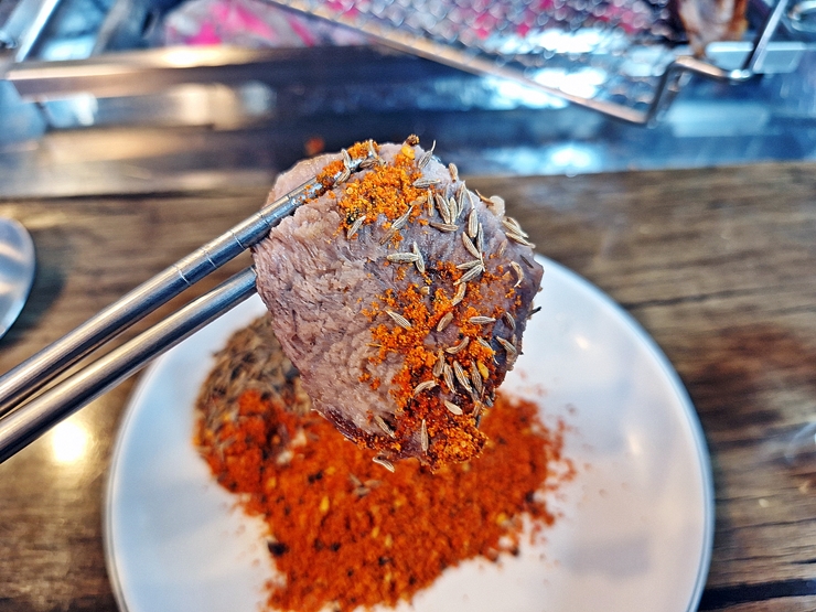 양다리 구이는 직접 썰어 먹어야 한다. 이게 또 재미란 말이지. 먹을 만큼 썰어서 취향에 맞게 구운 다음 그냥 먹거나 양념에 찍어 먹으면 된다. 양다리는 보기와 다르게 질기지 않고 독특한 풍미와 고소함을 가지고 있다. 여력이 된다면 양꼬치나 양갈비보다 양다리를 먹는 것이 좋다. 더 맛있기 때문이다.