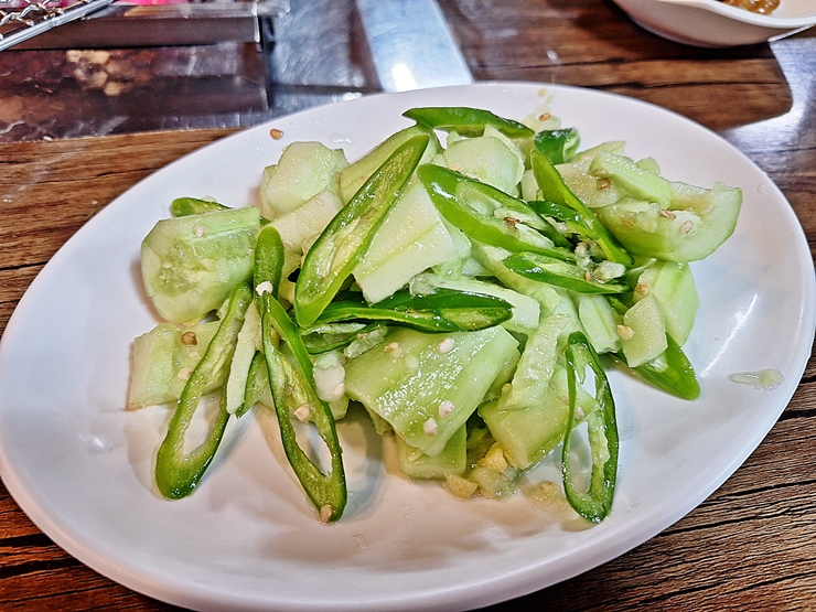 기본으로 나오는 오이 무침. 맛은 파이황과와 같다. 오이 무침에 들어 있는 고추는 내 입에 좀 매워서 하나만 먹고 먹지 않았다. 상큼한 맛이 식욕을 돋우는 역할을 하며 술을 부른다.