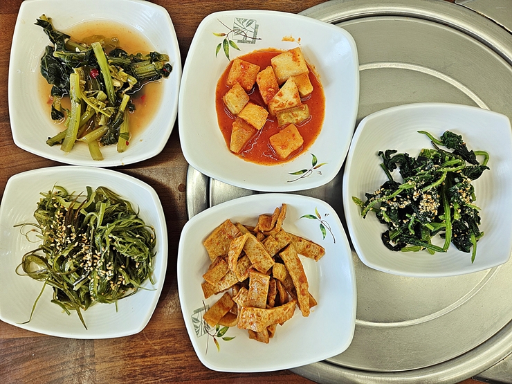 반찬. 참으로 아쉽게도 고기 반찬은 없지만 그래도 괜찮다. 고기 반찬이 있었더라면 해장 술을 마셨겠지. 내가 좋아하는 미역 줄기 무침을 맛있게 먹었다.