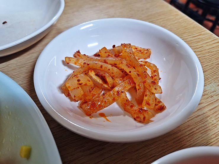 돼지 껍데기 무침이 반찬으로 나오다니 참으로 훌륭하지 않을 수 없다. 슴슴하면서도 간을 잘 맞춘 돼지 껍데기는 그 자체로도 훌륭한 소주 안주가 된다.