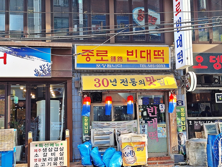 족발을 먹은 후 아쉬움을 한 가득 가지고 나왔다. 그래서 가볍게 2차를 가기로 했지. 예전에 한 번 가봤던 만족오향족발 맞은 편에 있는 종로빈대떡으로 가기로 했다. 내가 대학생일 때부터 있던 곳인데, 한 자리에서 꾸준히 영업을 하고 있는 곳이다.