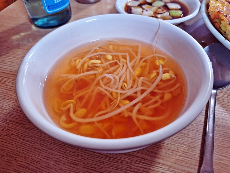 시원한 맛이 일품이었던 콩나물국. 콩나물국을 그리 좋아하지 않는데 종로빈대떡의 콩나물국은 시원한 맛이 훌륭했다. 술을 마신 후 콩나물국 한 모금 마시면 술이 깨는 느낌을 받는다. 그래서 리필을 한 번 해서 또 먹었지.