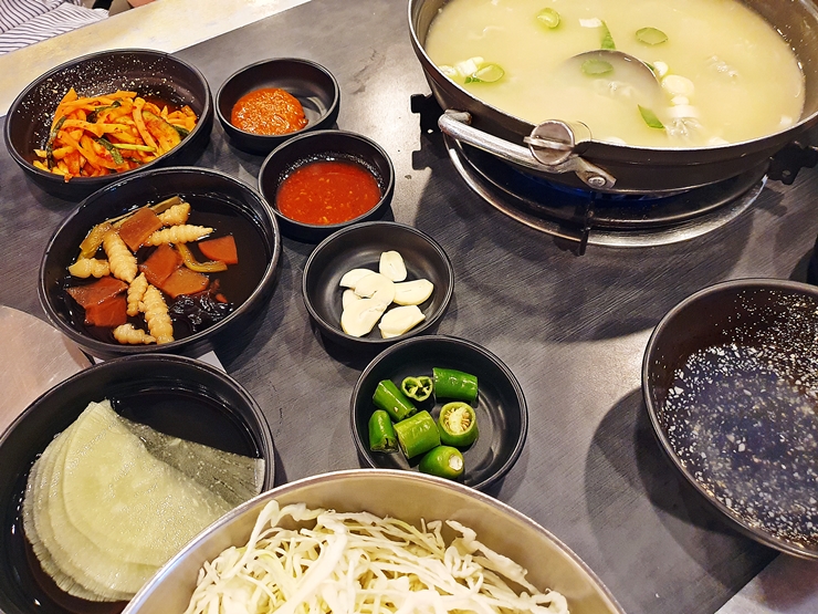 기본 반찬. 무 생채, 장아찌, 쌈무, 양상추, 쌈장, 초장, 마늘과 고추 등이 나온다. 부족한 반찬이 있을 경우 셀프 바를 이용해서 원하는 만큼 가지고 올 수 있다. 과하게 반찬을 가지고 올 경우 족발을 많이 먹지 못하고, 음식물 쓰레기가 생기는 불상사가 일어나기 때문에 먹을 만큼만 가져오는 습관을 기르도록 하자.