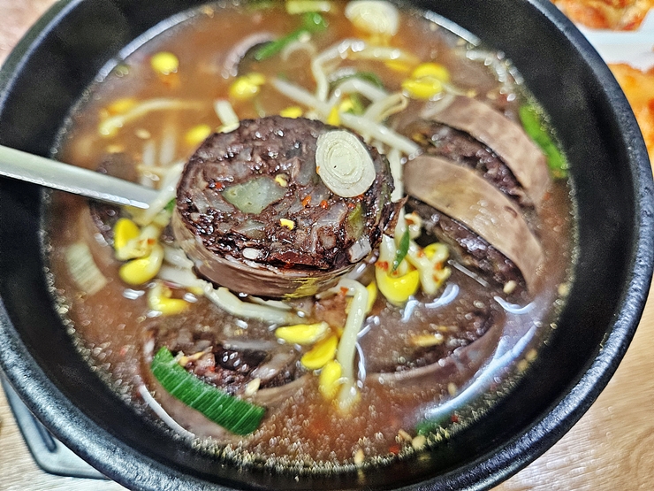 11,000원이라는 가격에 큼직한 막창 순대가 7개 정도 들어 있다. 특이하게 순댓국에 콩나물이 들어 있는데 그래서 국물에서 진한 맛과 시원한 맛이 같이 느껴진다. 은근히 칼칼한 맛도 느껴지는데 많이 맵지 않아서 식욕을 돋우는 역할을 한다.