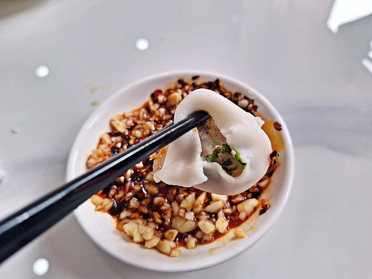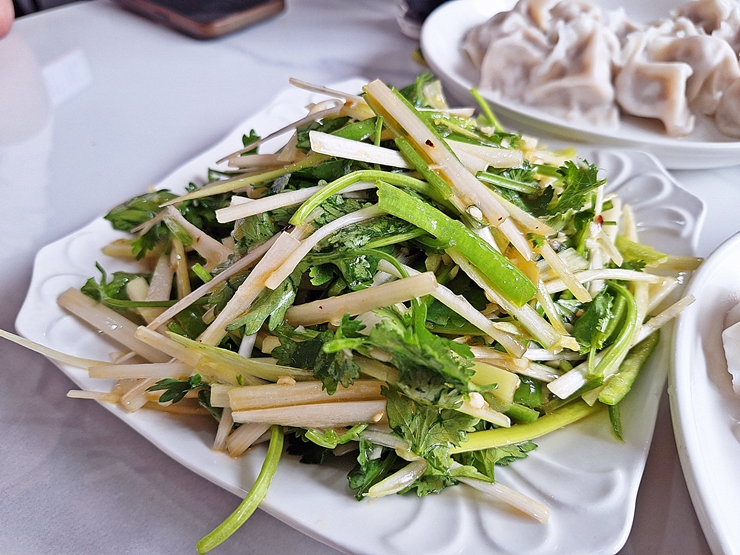 만두. 만두는 생김새가 다 똑같았다. 우리는 샐러리, 새우, 돼지고기와 양고기 만두를 주문했다. 전부 직접 만든다고 하는데 모양이 일정한 것이 참 신기했다.