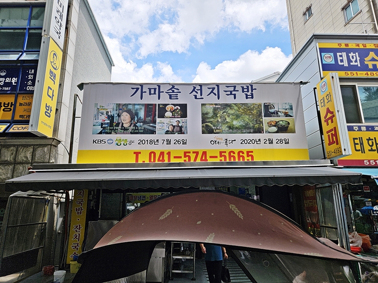 계속해서 이어지는 천안 먹거리 포스팅. 천안에서 1박 2일을 있었기 때문에 올릴 곳은 총 세 곳이다. 이번에 올릴 곳은 천안 중앙시장에 위치한 천안남산중앙시장가마솥선지국밥. 참으로 상호가 길다. 천안 중앙시장 남문 옆에 바로 있기 때문에 어렵지 않게 찾아갈 수 있는 곳이다.