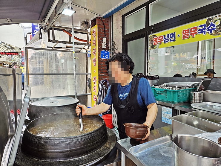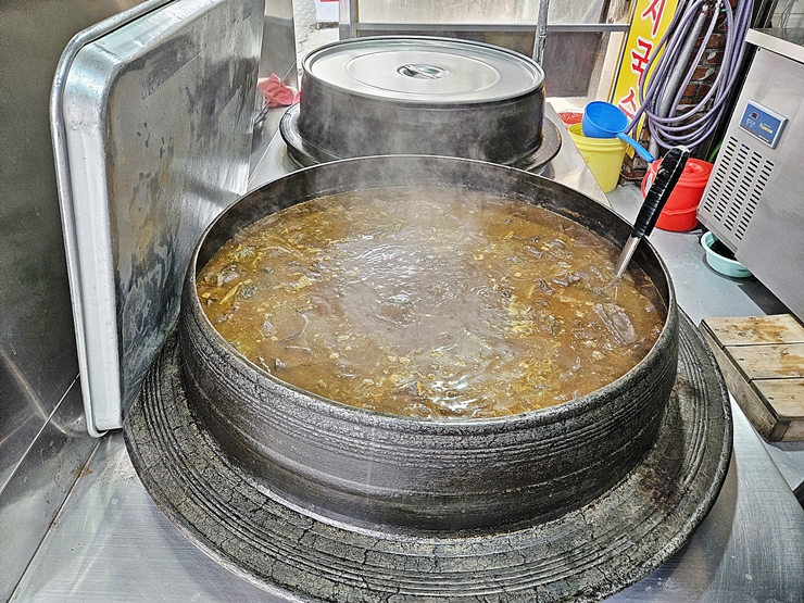 엄청난 포스를 풍기고 있는 가마솥. 가마솥에는 어마어마한 양의 선짓국이 팔팔 끓고 있다. 이렇게 많은 양을 때려 넣어서 끓이면 그 맛이 더욱 깊고 진해진다.