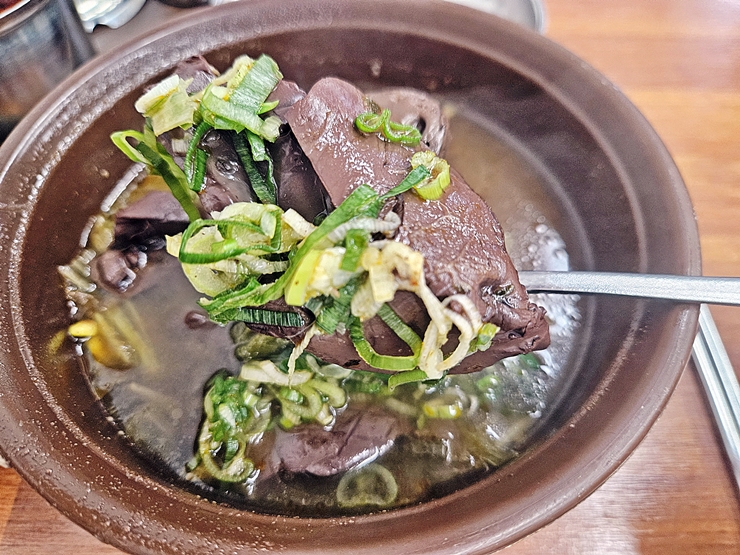 주문이 들어올 때마다 선짓국을 파로 퍼서 제공한다. 이렇게 계속 끓이기 때문에 주문하면 바로 나온다. 비주얼도 훌륭하고 고객 회전율도 높이는 아주 좋은 방법이다.