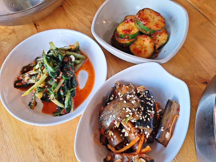 반찬. 열무김치, 오이 무침과 가지 무침이 나온다. 이렇게 맛있는 가지 무침은 참 오랜만에 먹어본다. 가치 무침이 은근히 칼칼한데 이 칼칼한 맛이 가지와 참 잘 어울렸다. 반찬은 매 번 바뀌는 것 같다.