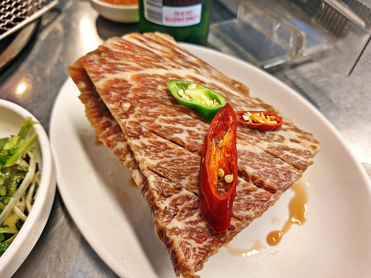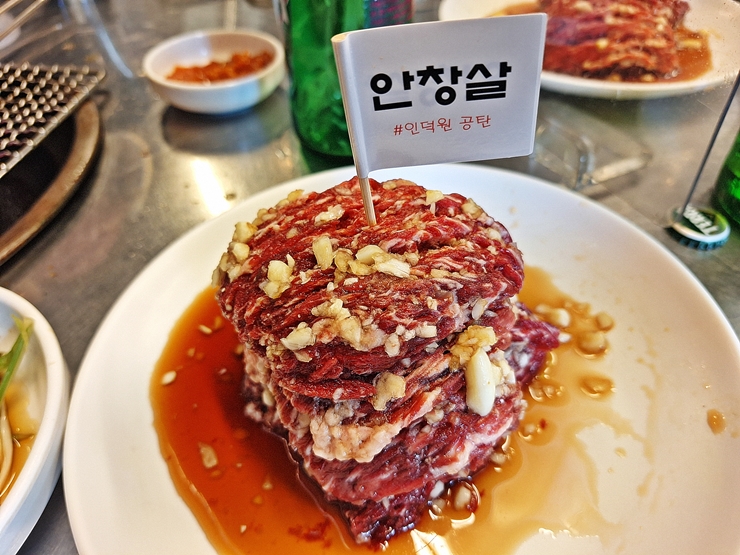 뭔가 아쉬워서 안창살도 주문했다. 안창살 역시 양념으로 나오는데 마늘을 가미했다. 비주얼이 상당히 아름답다. 역시 보기 좋은 떡이 먹기 좋은 법이다.